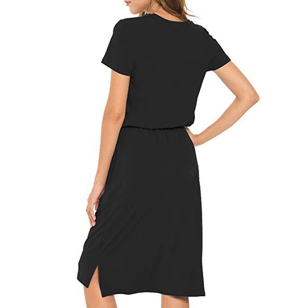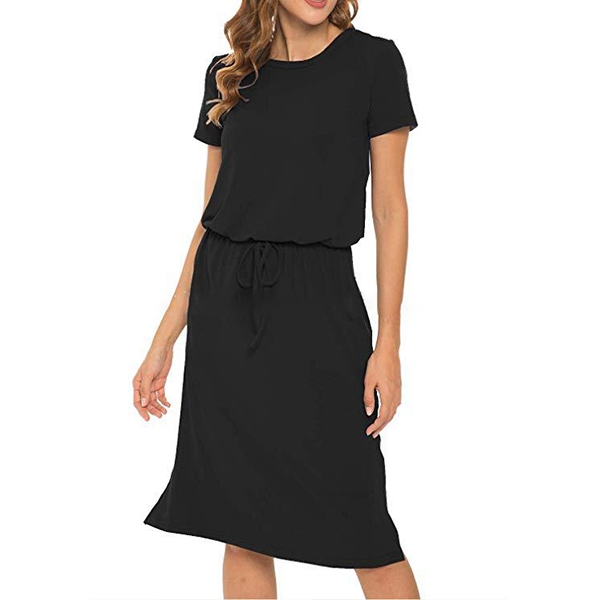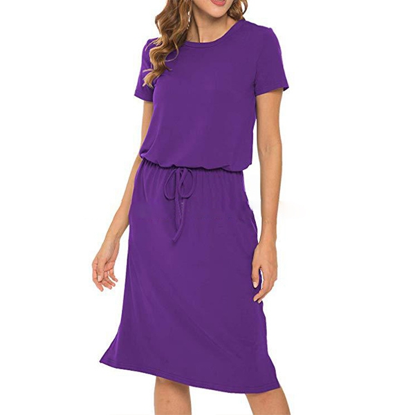 Comes with a solid color tone,finished with round neck,short sleeve and elastic waist design,simple,