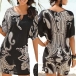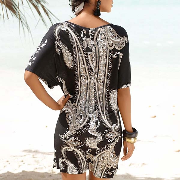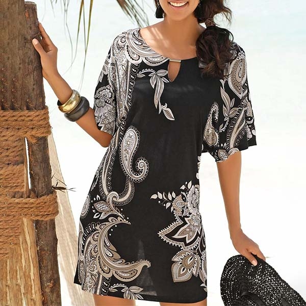 This summer,let this dress accompany you.It is finished with round neck,short sleeve and printed design,