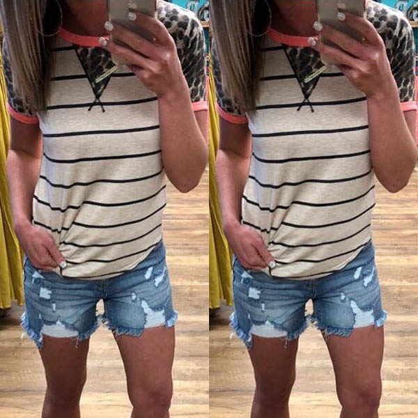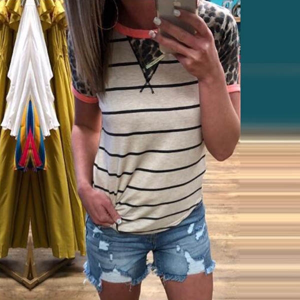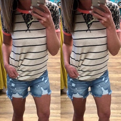 short sleeve and striped design,simple,cozy yet stylish. The contrast color and leopard