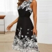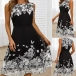 This summer,a black dress is essential.Look,are you satisfied with this piece? It is finishedwith round neck and sleeveless design,simple,cozy yet stylish. Moreover,the printed detailsmake it look more beautiful. So why not take interest in it?