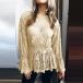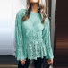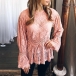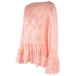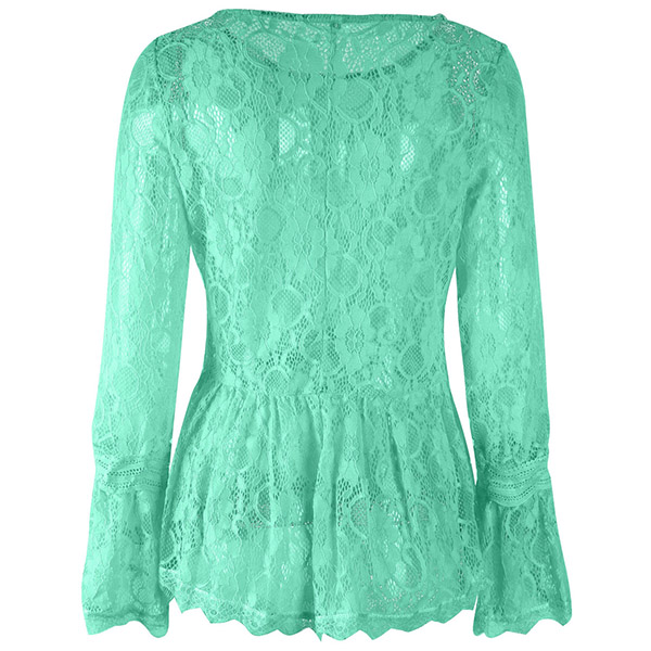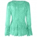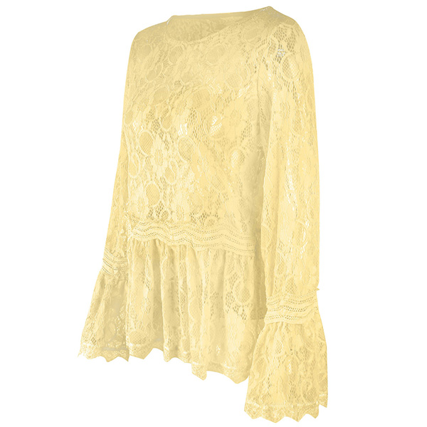 Pleated hem at the bottom of the shirt,trumpet sleeve and embroidered pattern decorates this stylish top.