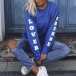 feature with a loose silhouette, ribbed trim, round neckline and long sleeves, come with letters ”lover”