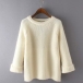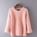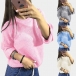 features a loose silhouette, outfit with round neckline, long sleeves. This piece will turn your plain