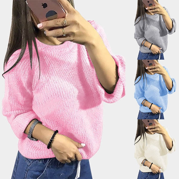 Receive warm and cozy feel without sacrificing style adorn this loose knit sweater! This knit sweater