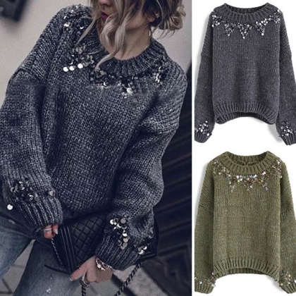 round neck and a clean silhouette,classic yet stylish. The sequin spliced design will make this piece look