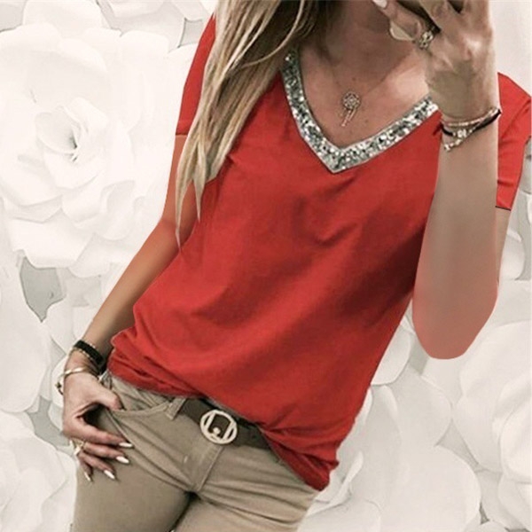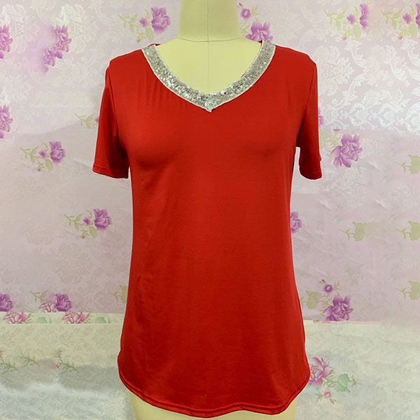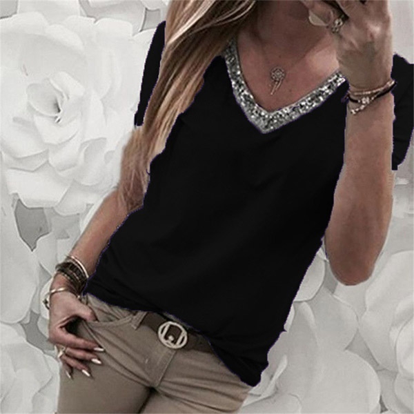 sleeve and v-neck design,the sequin spliced design enhances its charm. What's more,thanks to the