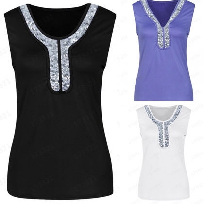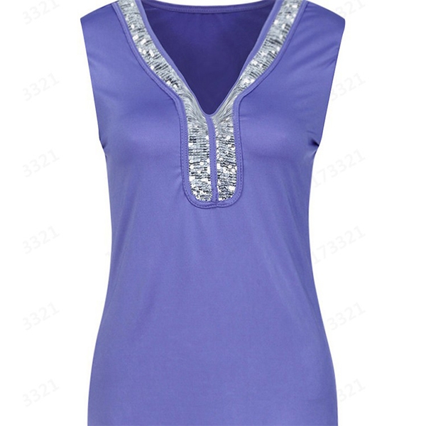 this piece of course can offer you a comfortable day. What's more,the sequin spliced v-neck design