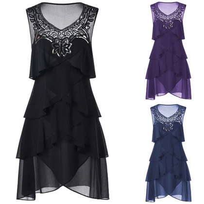 It features a solid color,with sleeveless and round neck design,elegant yet delicate.