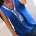 on this piece? It is finished with sleeveless and v-neck design,the sequin spliced details enhance its charm.