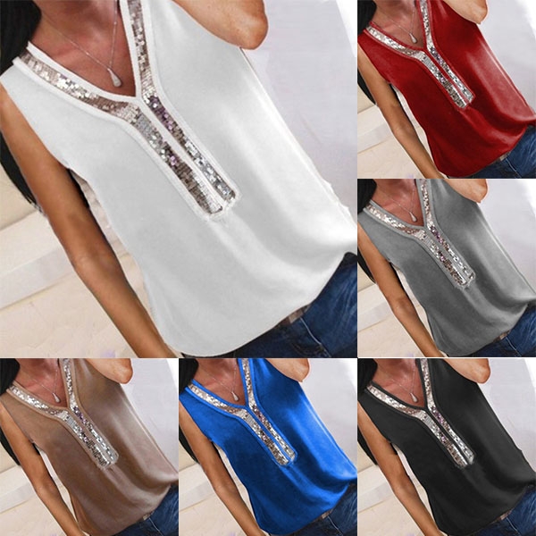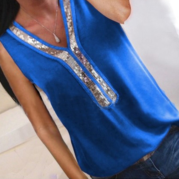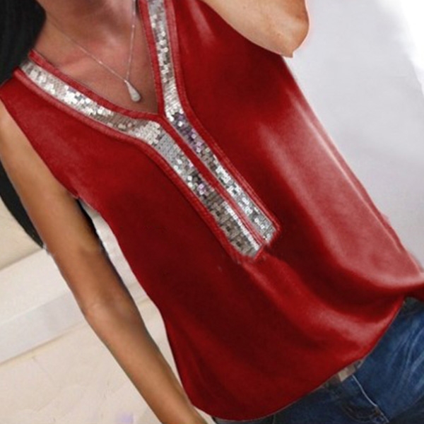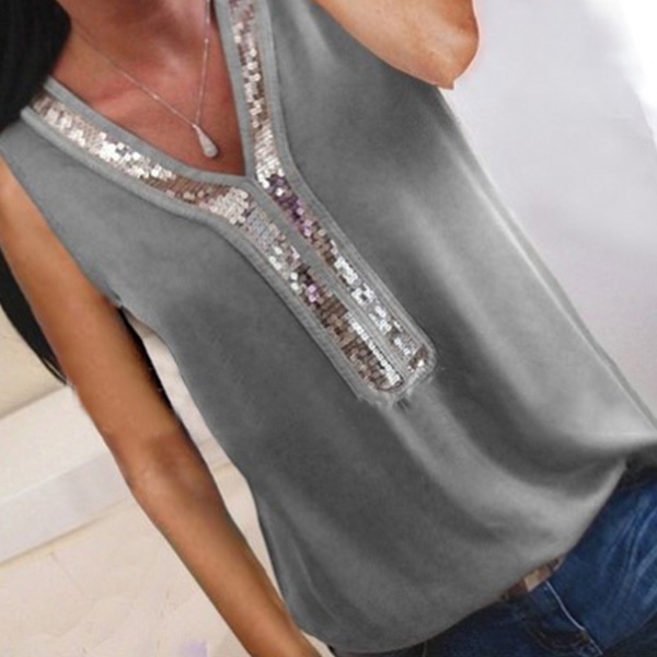 Fashion Sequin Spliced Sleeveless V-neck Top