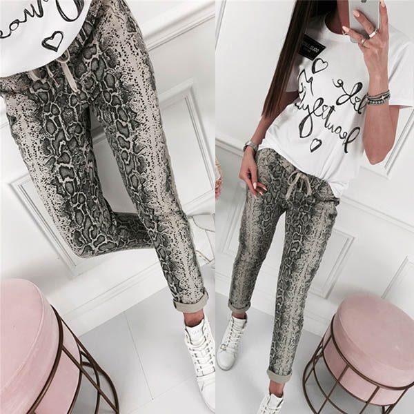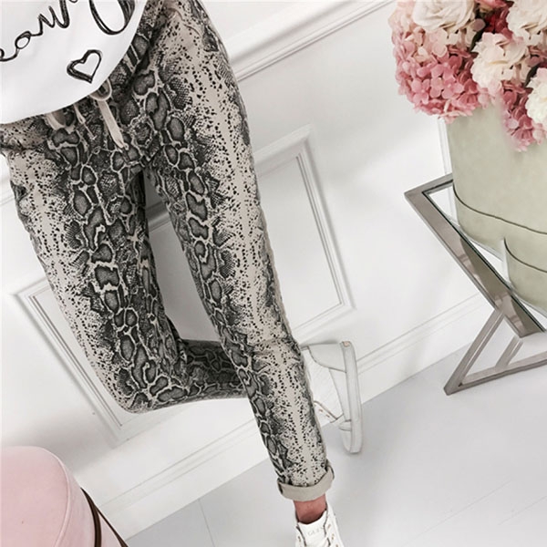 What makes this pants look so attractive and eye-catching? It owes to the serpentine printed details.