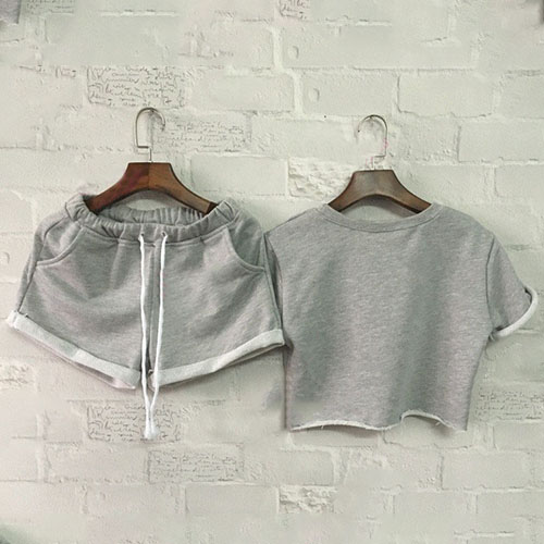 Solid color style,including a short sleeve round neck crop tops and an elastic waist shorts,