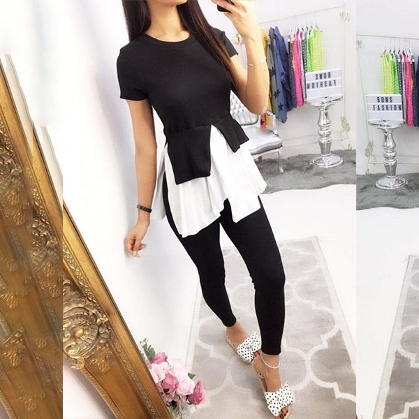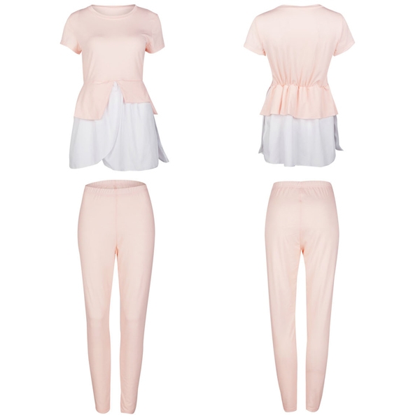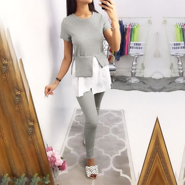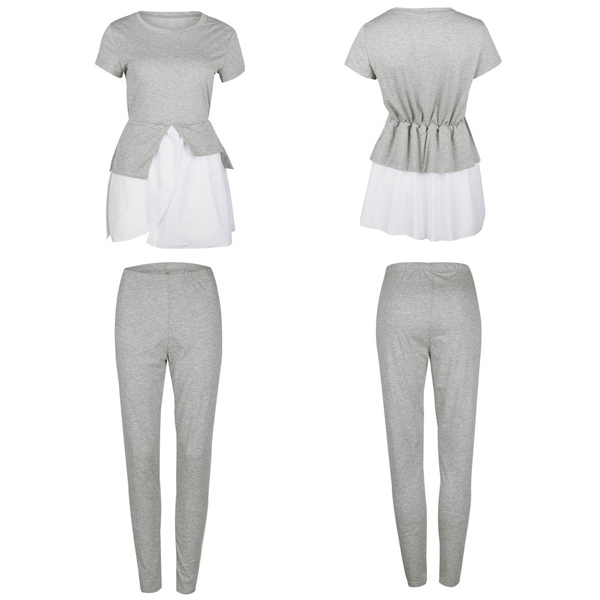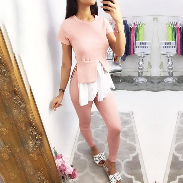 this two-piece set in your team. Including a short sleeve round neck top and a high waist pants,