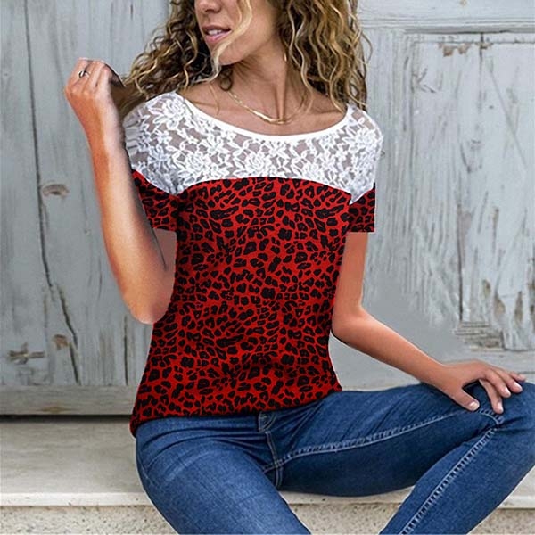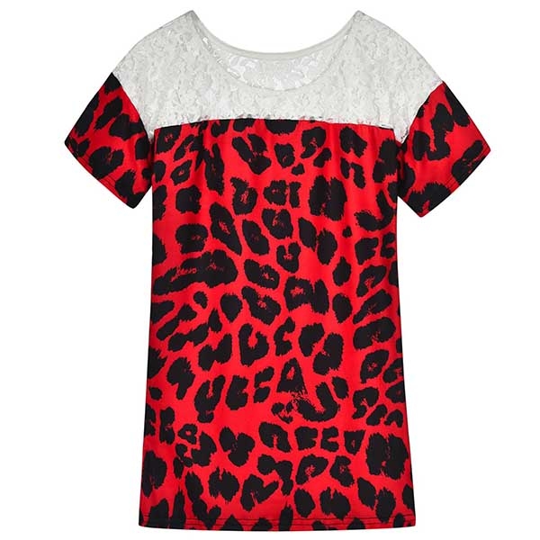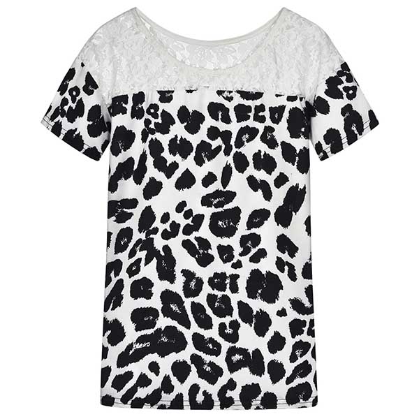 Update your t-shirt collections with this wonderful piece. The lace spliced details and leopard printed