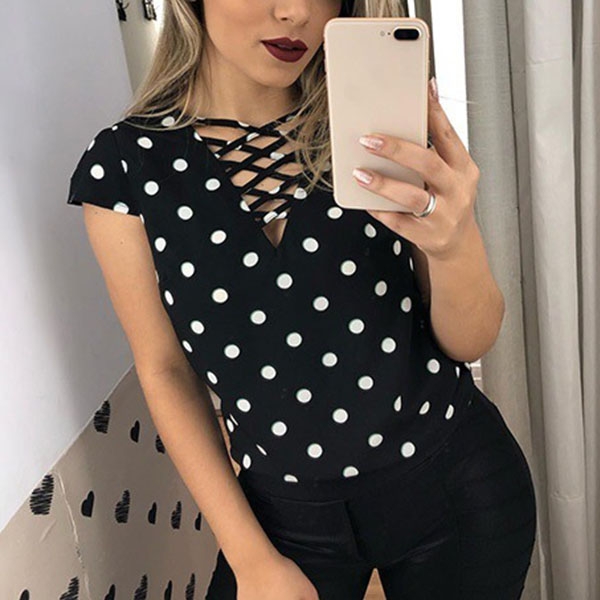 As for a playful and eye-catching look,you can just trust in this wonderful top. The dots printed