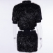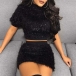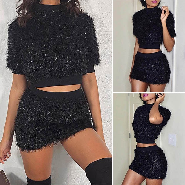 This plush two-piece set is a good way to showcase your sexy and seductive curve. It consists of a short