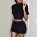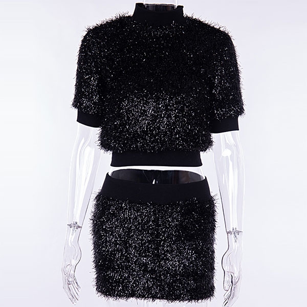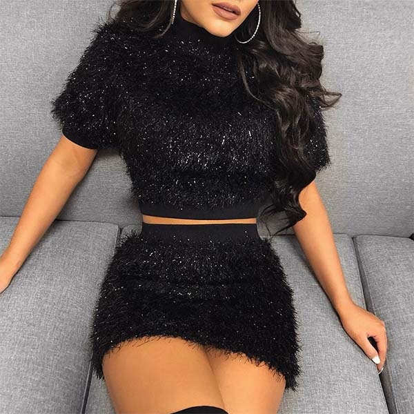 sleeve mock neck crop top and a high waist skirt,the soft and cozy plush fabric can give you a long-lasting