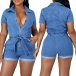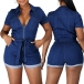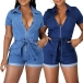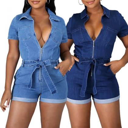 You can easily update your daily style with this denim romper. Finished with short sleeve and POLO collar design,the high waist and fit silhouette design can showcase your perfect curve. Comes with a waist strap design will make this piece look more attractive. Your sexy and feminine personality will be on full display with this denim romper.