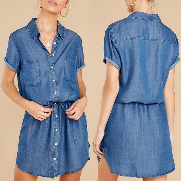 Du kan ge din stil en omedelbar boost med den här klänningen. Avslutad med kort ärm, POLO-krage och enkelknäppt, enkel, klassisk men ändå snygg. Vi föreslår att du lägger till ett tunt midjeband om du vill se mer charmig ut!