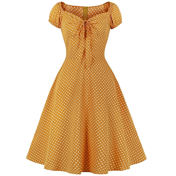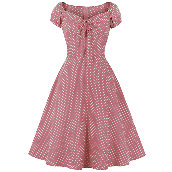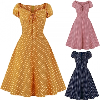 Letar du efter en klänning som är mångsidig för både arbete eller helger, välj den här klänningen! Designad med kort ärm och rund hals, den pricktryckta designen ger dig en mer lekfull och iögonfallande look.Lägg till den här klänningen i din garderob och den kommer inte att göra dig besviken!