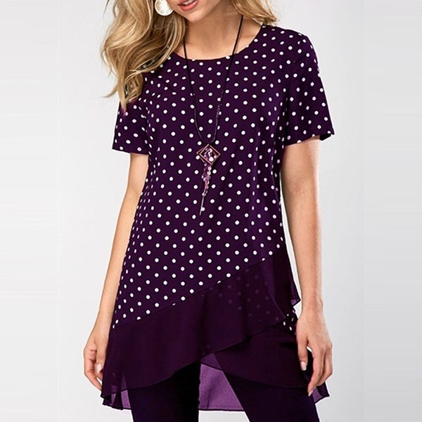 irregular gauze spliced hem design will make it look more attractive. Finished with short sleeve and