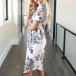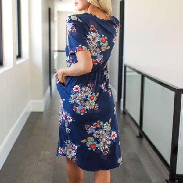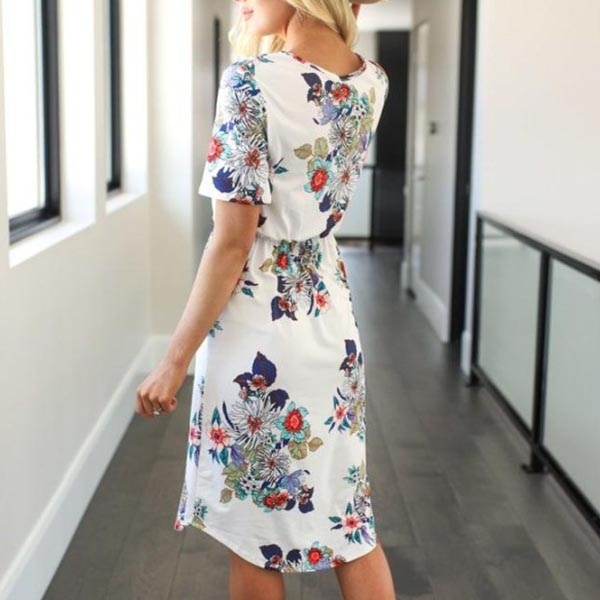 Features chic and eye-catching printed details,with short sleeve,round neck and drawstring waist design,
