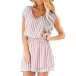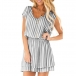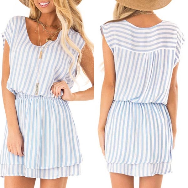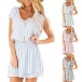 Fashion Short Sleeve Round Neck Elastic Waist Striped Dress