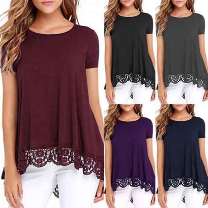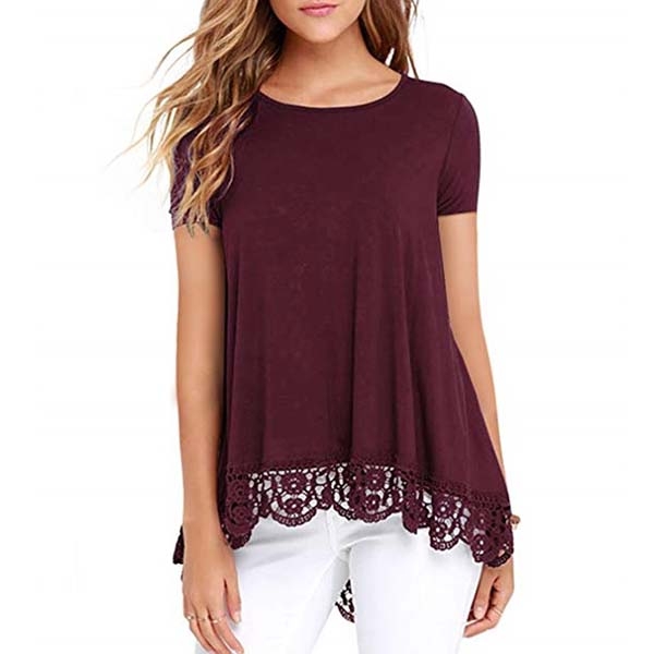 Med kort ärm, rund halsringning och spetskant i fållen, erbjuder denna t-shirt dig en bekväm passform
