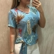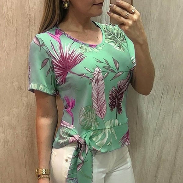 This t-shirt is designed with chic and eye-catching printed details,finished with short sleeve and round
