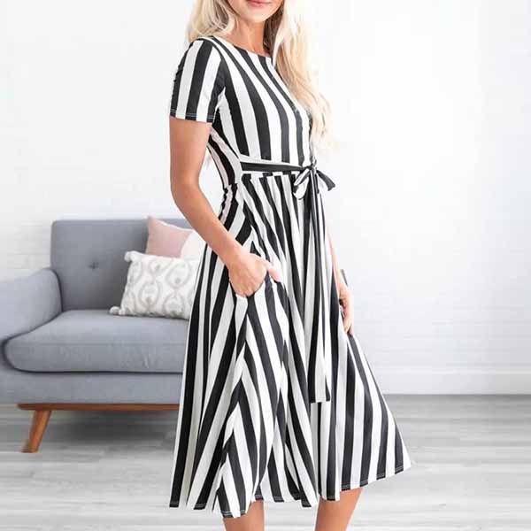 This is a dress which can fit for different occasions. Striped element design makes it look so stylish