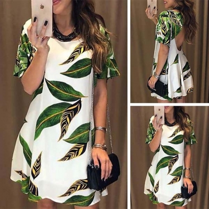 The leaf printed pattern design is the highlight. Finished with short sleeve and round neck design,