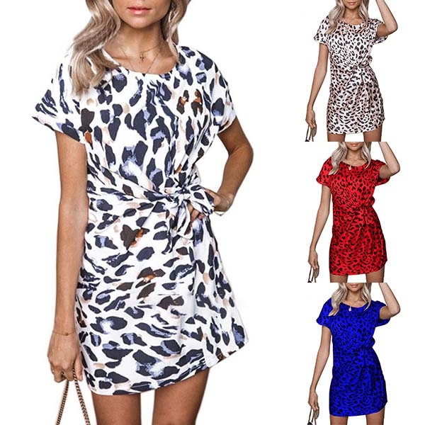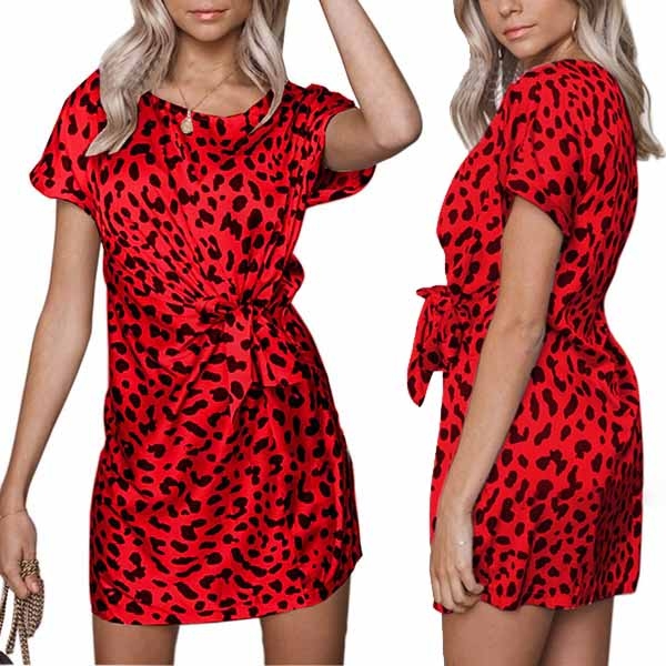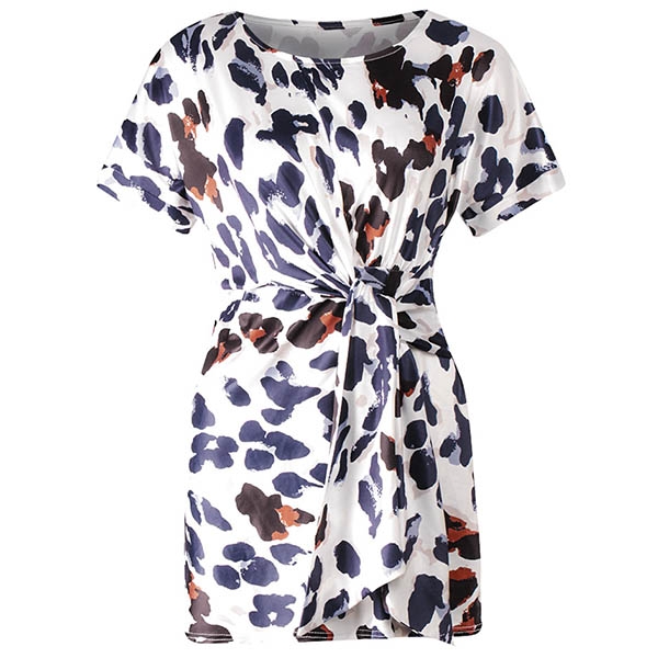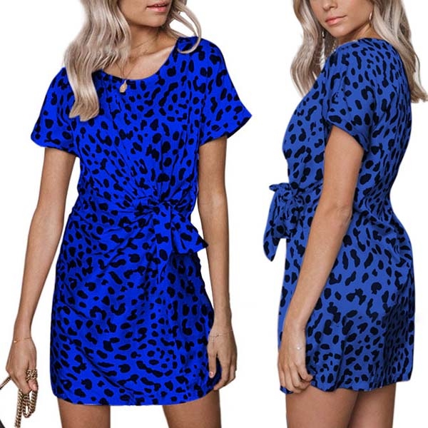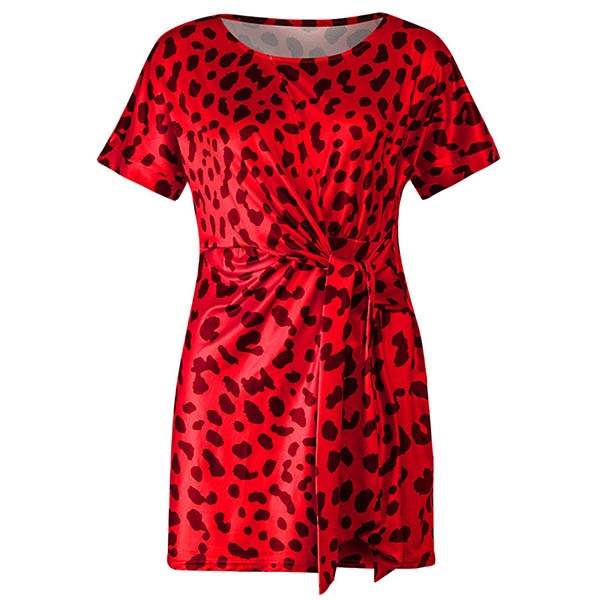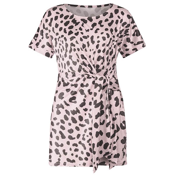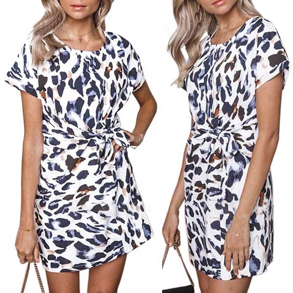 The leopard print details make this piece look so eye-catching. Finished with short sleeve and round neck