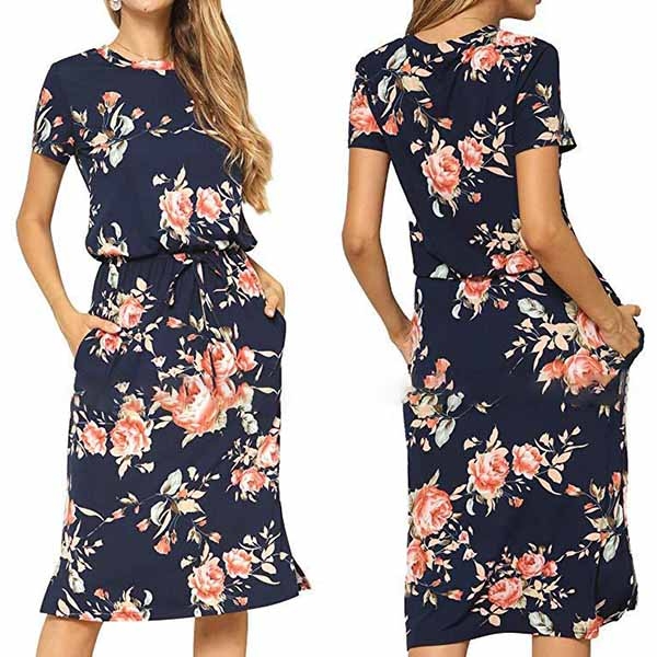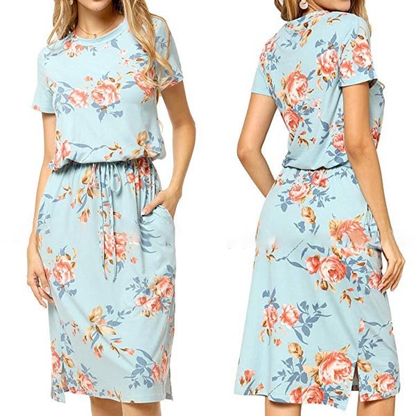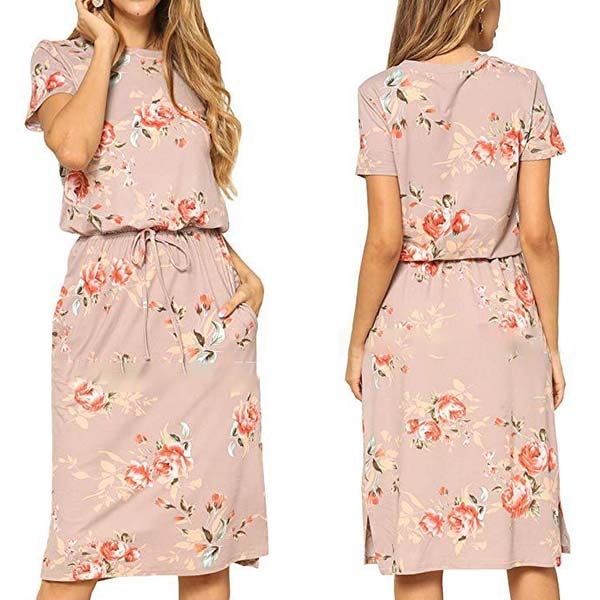 with short sleeve and round neck design,classic yet stylish. The drawstring waist design can better