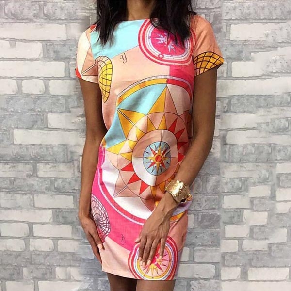 It is finished with short sleeve and round neck design,its chic printed pattern design will make this piece look