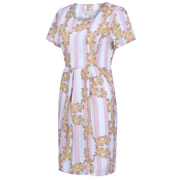 with short sleeve,round neck and a clean silhouette,this dress knows how to showcase your