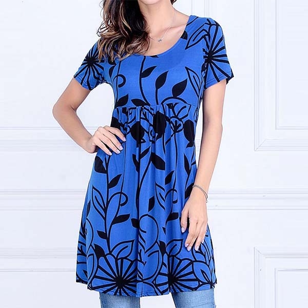 Outfitted with chic and eye-catching printed details,with short sleeve and round neck design,this dress