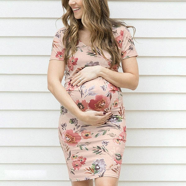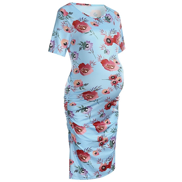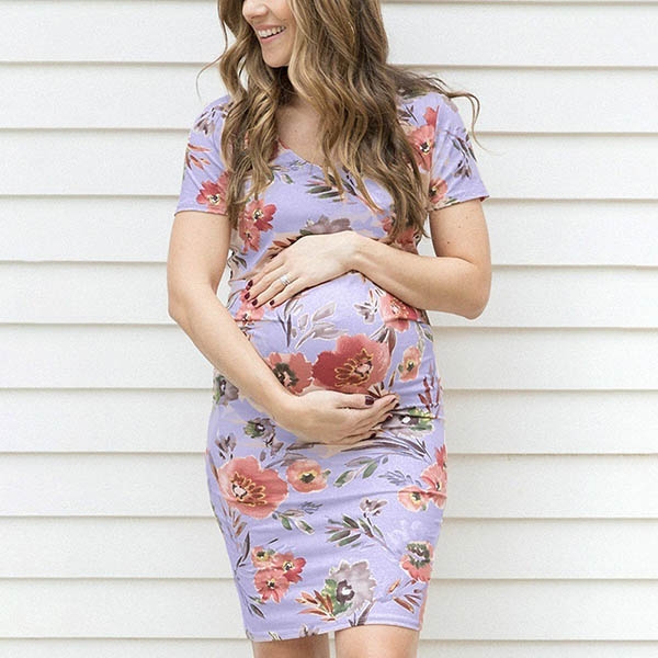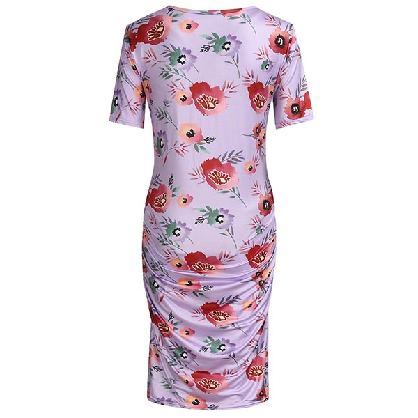 Fashion Short Sleeve Round Neck Printed Maternity Dress
