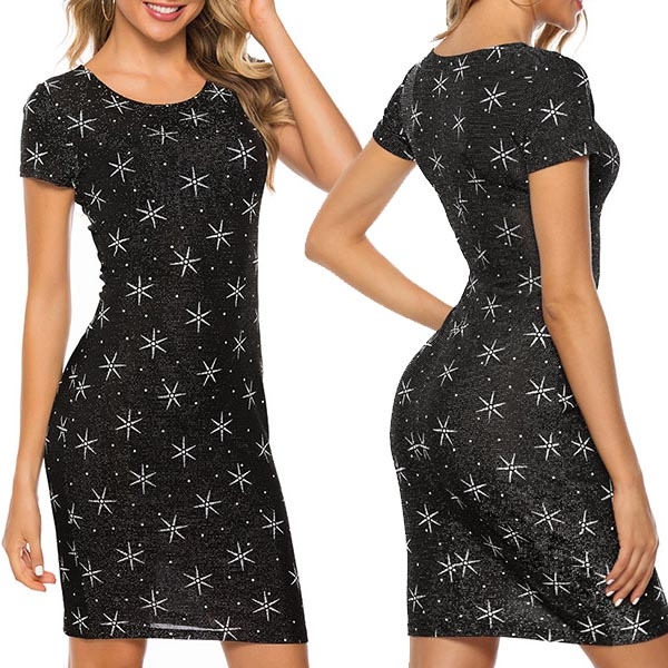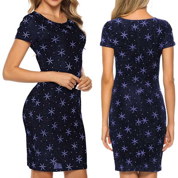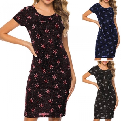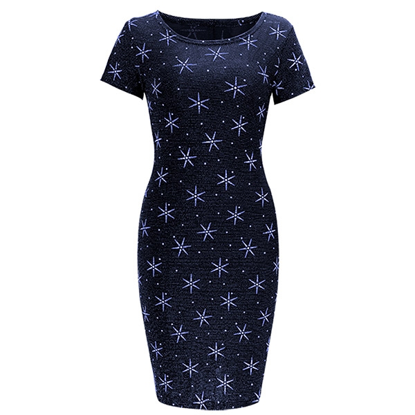 This printed dress is designed with short sleeve,round neck and a fit silhouette design,which