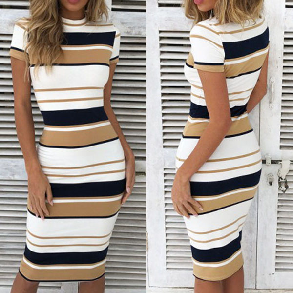 When you wanna showcase your perfect curve,you can just slip into this dress. Striped element design