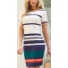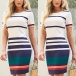 You will easily fall in love with this style thanks to the effortless yet statement-making look it offers. The colorful striped element design makes this piece look so stylish and popular. Finished with short sleeve,round neck and a fit silhouette,this wonderful dress is fit for both your workdays and weekends. It is a wise choice to invite this dress to your wardrobe!