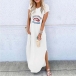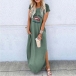 breathable fabric,with short sleeve,round neck,slit hem and chic printed pattern,this dress can