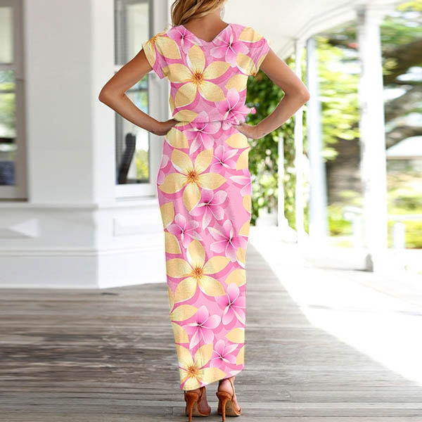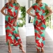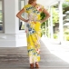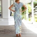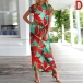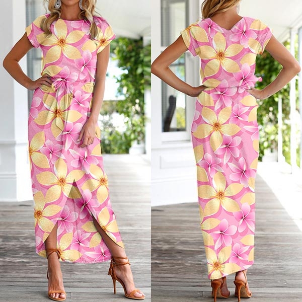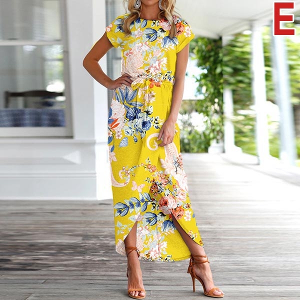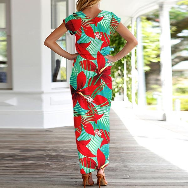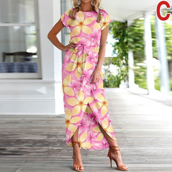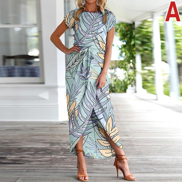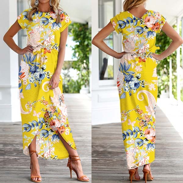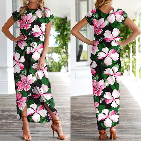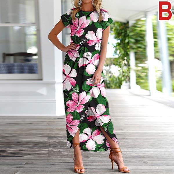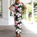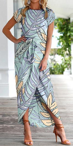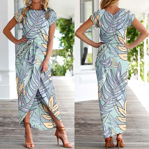 Fashion Short Sleeve Round Neck SLit Hem Printed Dress