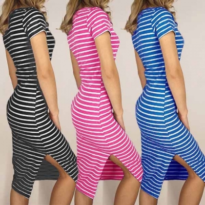 It is designed with striped element,stylish and popular. Finished with short sleeve,round neck,