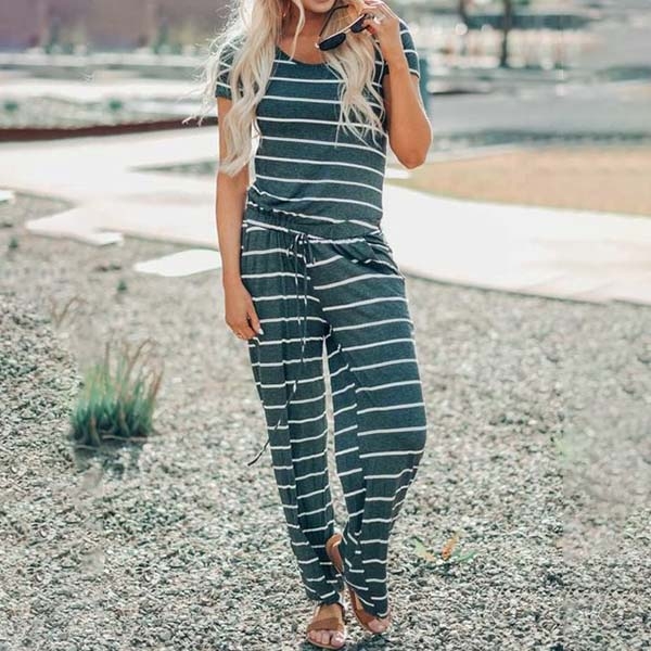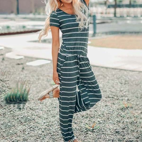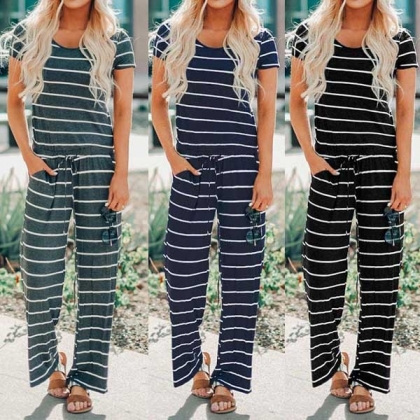Wanna update your daily style? Then just throw yourself into this jumpsuit! Striped style,finished with short