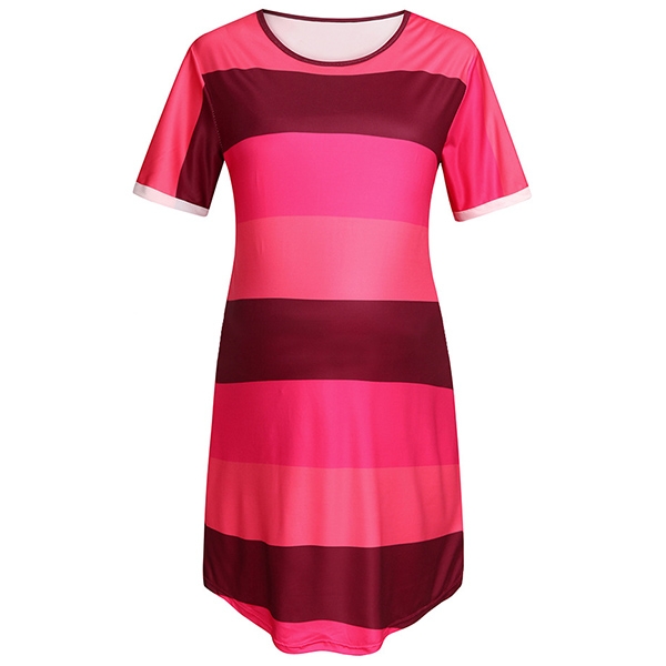 Fashion Short Sleeve Round Neck Striped Maternity Dress