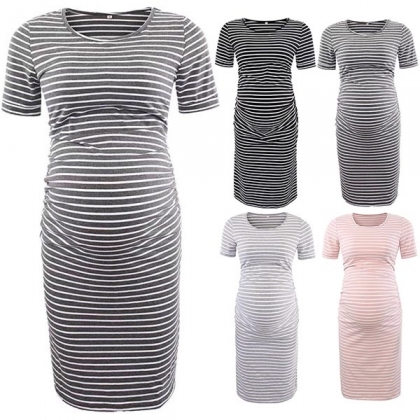 with striped element,stylish and popular. Finished with short sleeve,round neck and a clean silhouette,