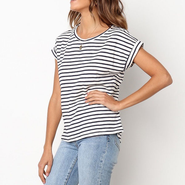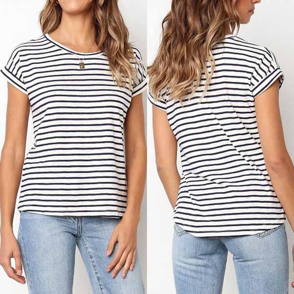 Designed with striped element,finished with short sleeve and round neck,this t-shirt allows to be matched