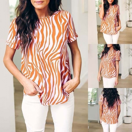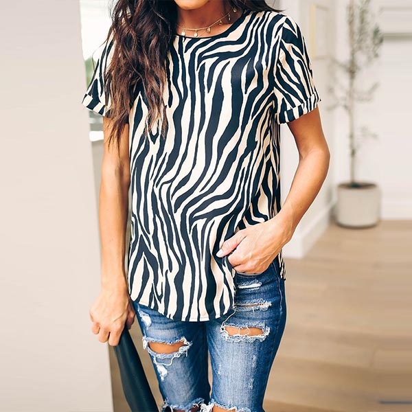 This short sleeve t-shirt is the perfect partner for you in this summer season. The zebra printed