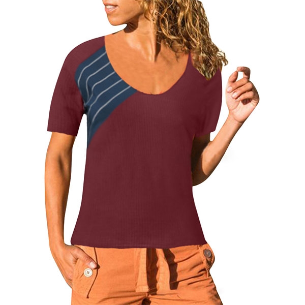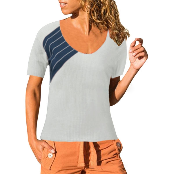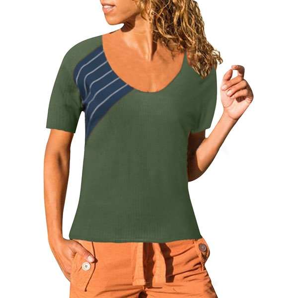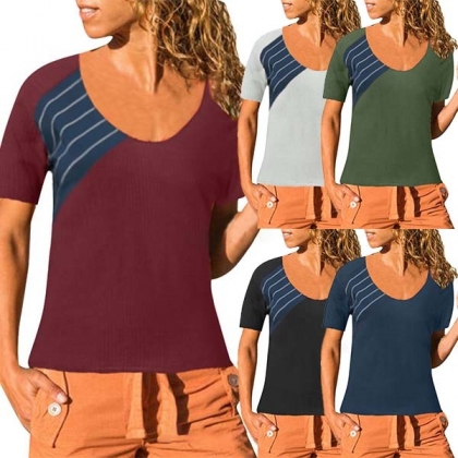Fashion Short Sleeve Round Necl Striped Spliced T-Shirt