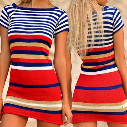 with short sleeve,round neck and a fit silhouette design,this dress will display your slender figure.